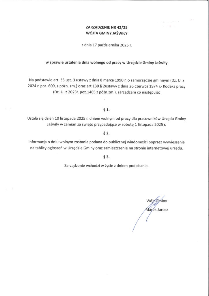 / Dzień wolny od pracy w Urzędzie Gminy Jaświły
