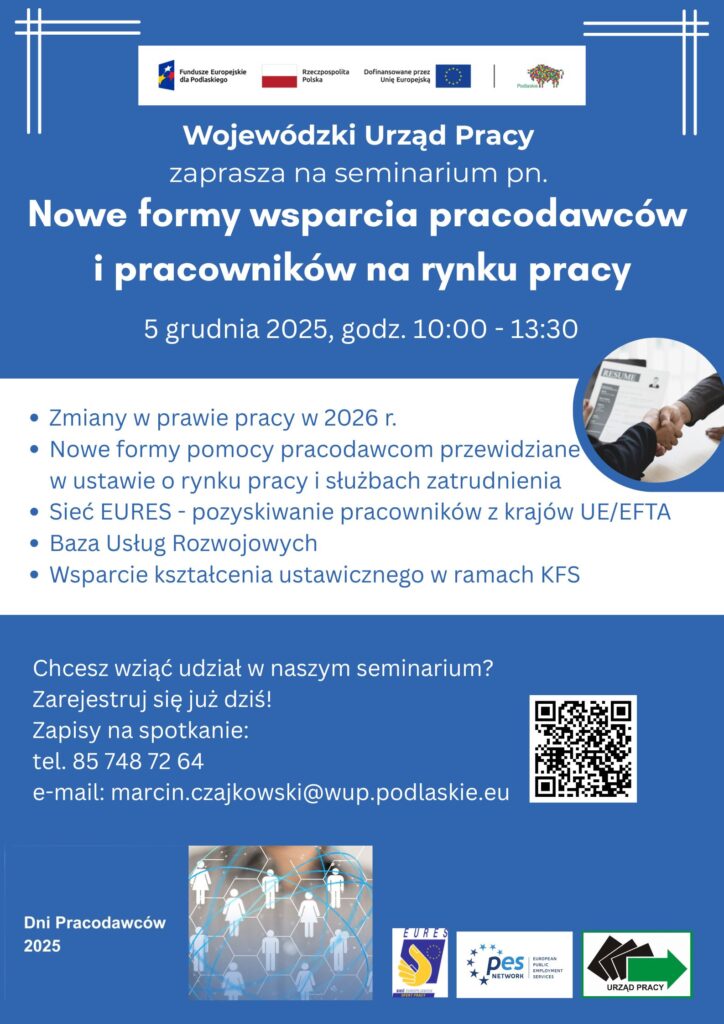 Informacja o seminarium pn. Nowe formy wsparcia pracodawców i pracowników na rynku pracy