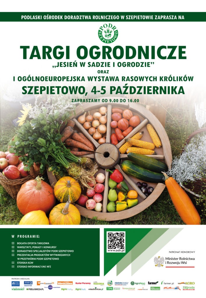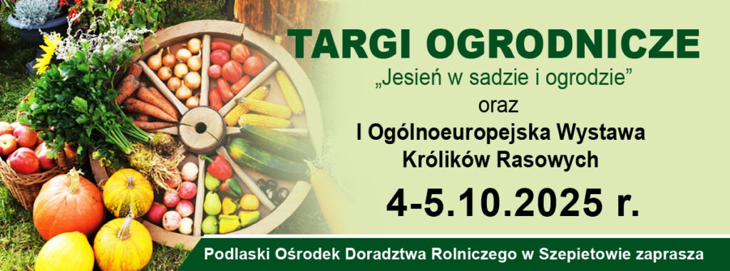 Podlaski Ośrodek Doradztwa Rolniczego w Szepietowie serdecznie zaprasza na Targi Ogrodnicze „Jesień w sadzie i ogrodzie” – wydarzenie dla wszystkich, którzy pragną odkryć uroki i bogactwo polskiej jesieni w ogrodzie i sadzie.