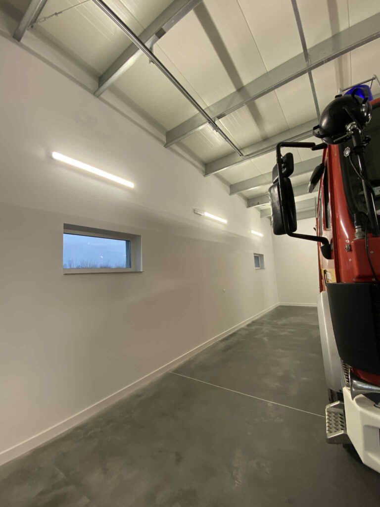 Jednostka zyskała nowoczesny i przestronny budynek, w którym swobodnie mieści się samochód strażacki oraz całe wyposażenie ratowniczo-gaśnicze 🚒💨🧯
