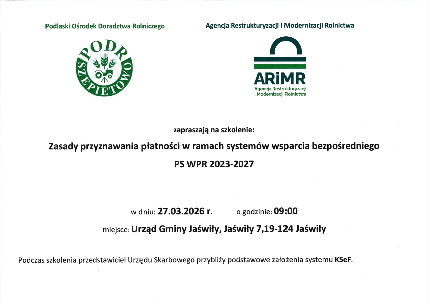 / Szkolenie – Zasady przyznawania płatności w ramach systemów wsparcia bezpośredniego PS WPR 2023-2027